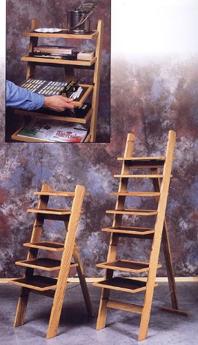Artist's Organizer by Best Easels...This is a wonderful adaptation on the artist's taboret idea. The frame itself is beautiful solid oak and the individual shelves are hardboard with oak edging. At 49 inches tall it's perfect for use either sitting or standing; or use it as a portable shelving unit. The unit comes with three 17"(width)x9-3/4"(depth) shelves and two 17"x12-3/4" shelves. Shelves can be loaded up with supplies and easily moved around or re-arranged; or load up each shelf with supplies and take them with you from room to room. David one of our employees thought that these Organizers where so cool that he bought one to use with his jewelry making and drawing supplies. "Each shelf can be loaded up with materials; and then I can take individual shelves outside to work on the porch; or into my studio; or into the living room so that I can work on jewelry while watching the TV shows that I'm addicted to. Then all I have to do is slip the shelf back onto the rack when I'm done working for the day. It's also great for my drawing supplies and I have a few shelves loaded up with drawing supplies and pastels so that I can have access to them right next to my drawing table. It's like being able to take my studio from room to room and keep my supplies organized all at the same time!"
